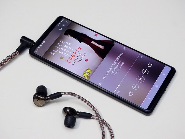 Astell & Kernのイヤホン「AK T9iE」をつないで音を聴いてみた。久しぶりにXperiaにイヤホンを挿せる。懐かしい手応えに感極まった。音質はXperiaらしい、ハイレゾ音源への敬意を感じさせる豊かなディテールの情報量とフラットで心地よいバランスを継承している。ボーカルの繊細なニュアンスを相変わらず丁寧に再現してくれる。