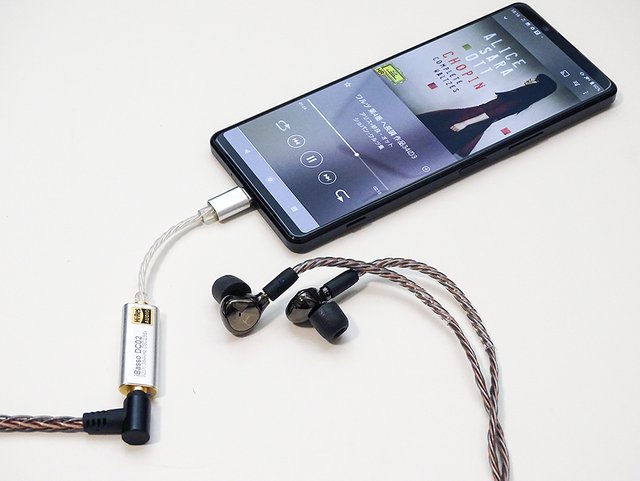 ウォークマンなど音楽専用プレーヤーと比べてしまうと、それほどまでのパワーは出せないので、Xperiaでより本格的なハイレゾ再生を楽しむのであればiBassoの「DC01」「DC02」のような、USB Type-C端子につないで使うポケットサイズのハイレゾ対応DAC内蔵ヘッドホンアンプを使う手もある。