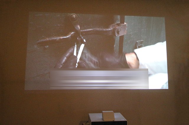 ただし超短焦点プロジェクターの特性として、下型から投写するため厳密には投写した映像の上辺と下辺では距離に差がある。このため片辺に合わせると他辺のフォーカスがやや甘くなる。画面中央あたりでフォーカスを合わせておく事を推奨したい。