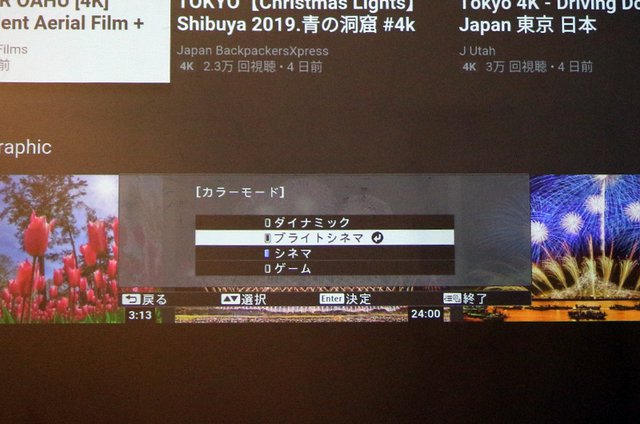 なお、リビングのような明るい部屋での鑑賞は“ブライトシネマ”がオススメ。黒色はグレーがかり映像全体はやや濃い色傾向となるが、色バランスは一定レベルで上手く確保。カジュアルな壁投写でこれだけ本格的な映画的な画質を作り上げているのは素晴らしい。