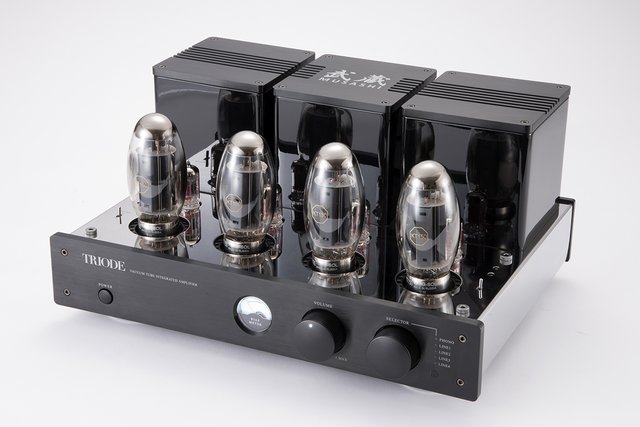 そんな私の志向にマッチする真空管アンプに昨年秋、出会った。トライオードの「武蔵/MUSASHI」である。定格出力は100W×2(8Ω)と不足なく、プリメインアンプという構成ながら、ボリュームや入力セレクターをバイパスするパワーアンプ・モード(MAIN IN端子)を備えている点も私には好都合。本特集にかこつけて、あの好印象を改めてということで再び自宅でMUSASHIを試聴させていただくことと相成った。