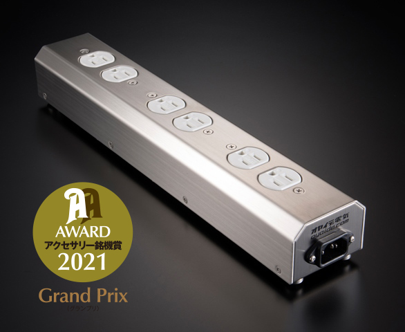 OCB-1シリーズで知られる老舗ブランド・オヤイデの、使い勝手と音質に優れる新たな電源ボックス「MTS-6II」。電磁波やノイズ、制振対策を入念に施したボディに、さらにパーツの吟味とワイヤリングの見直しなどを施し、より一層の音質アップを実現した。バフフィニッシュを施したコンセントや特別開発のロジウムメッキインレットを新たに採用したほか、内部配線は試聴を重ねて選定、国産パーツで細部まで丁寧に作り上げている。音のツボを押さえた高精度で確かな作りと、優れた音質性能を適価で実現させた製品として評価され、栄えあるグランプリ受賞となった。