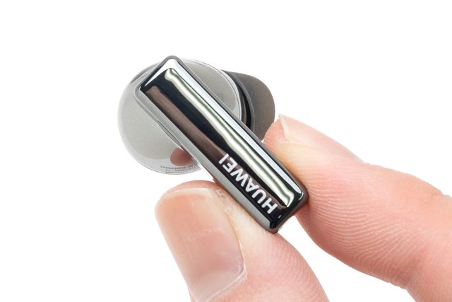 実機を手にした際、まずその上質なデザインに目を奪われるだろう。鈍い光沢を帯びた丸みを帯びたハウジング部に、直方体のスティック型の柱で構成する幾何学的デザイン。初代のHUAWEI FreeBuds 3から継承する、耳から下にアンテナが伸びる形状だ。
