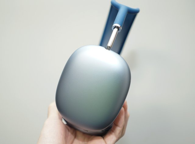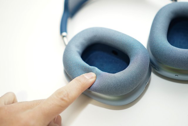 AirPods Maxのイヤーパッドは中のメモリーフォームクッションがとても柔らかく、耳のまわりに柔らかくフィットする。テンプルを押さえつけてくることがないので、長時間身に着けて音楽を聴いていても疲れない。テンプルの部分に隙間ができて音がリークすることもない絶妙なフィットが得られるので、ANC機能をオフに切り換えてみても高いパッシブNC効果がある。