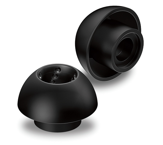 ビクター「HA-FX100T」の音質をさらにグレードアップさせてくれる別売オプションとして、新開発「スパイラルドットSF(EP-FX11)」も発売されている。完全ワイヤレスイヤホンとのマッチングに優れた薄型フォルムで、傘の部分に一般的なものよりも柔らかいシリコン素材を採用しており、耳穴に沿って保持する仕様としていることがポイント。ホーン形状の音導筒によって見通しのいいサウンドを目指している。