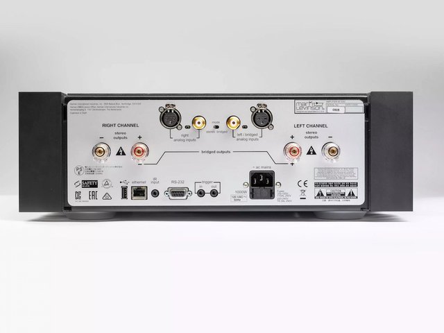 【ステレオモード】●出力:135W/ch@8Ω(両チャンネル駆動)、270W/ch@4Ω●ゲイン:25.8dB●入力感度:145mV RMS(2.83V RMS出力)●全高調波歪率:0.04%以下(1kHz、135W@8Ω)●SN比:102dB以上(20Hz〜20kHz、非補正、135W@8Ω出力基準)【ブリッジ・モノラルモード】●出力:275W@8Ω、500W@4Ω●ゲイン:31.8dB●入力感度:73mV RMS(2.83V RMS出力)●全高調波歪率:0.04%以下(1kHz、275W@8Ω)●SN比:105dB以上(20Hz〜20kHz、非補正、275W@8Ω出力基準)【総合】●周波数レスポンス:2Hz〜80kHz(+0/-3dB)●入力インピーダンス:バランス(XLR)=100kΩ/アンバランス(RCA)=50kΩ●入力端子:XLR(バランス)×1、RCA(アンバランス)×1●スピーカー出力端子:バナナ対応大型バインディングポスト●コントロール端子:RS-232ポート、Ethernetポート、アップデート用USB-A、IRリモート入力、DCトリガー入出力●消費電力:最大=1,000W/無信号時=90W(ステレオ)、70W(ブリッジ)/スタンバイ時=35W、パワーセーブ時=2W、グリーン時=0.4W以下●サイズ:438W×145H×527D(突起部含む)?●質量:31.7?