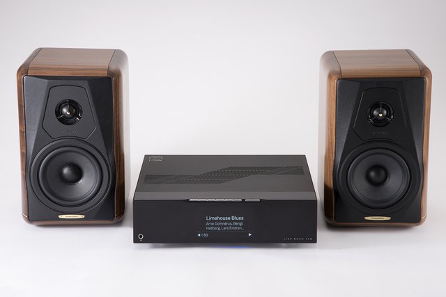 MAJIK DSM/4は外見もSELEKTシリーズに近く、横幅と奥行きはどちらも350mmと前作よりもコンパクトだ。ブラック仕上げのアクリルパネルに埋め込んだOLEDディスプレイに表示されるアルバム名や曲情報はとても見やすく、フォントも洗練されている。この意匠とのマッチングも意識しながら、5つのスピーカーを順番に聴いていく。