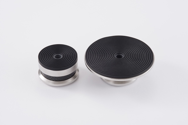 両者の違いは形状と重量で、直径45mmで210gの小ぶりな「Monaco」、一方の「Monza」はディスクとの設置面に向け、末広がり形状にシェイプされた直径79mmで350gとなっている。重さや形状ももちろんだが、設置面の制振シートの大きさや、そこに刻まれたスリットの数も異なり、小型の「Monaco」の方がシート部が若干厚く、触った感触では弾性も少しだけ高いなど、それぞれに最適化された設計となっていることが推察できる。よって、当然両製品から得られる音も異なる。
