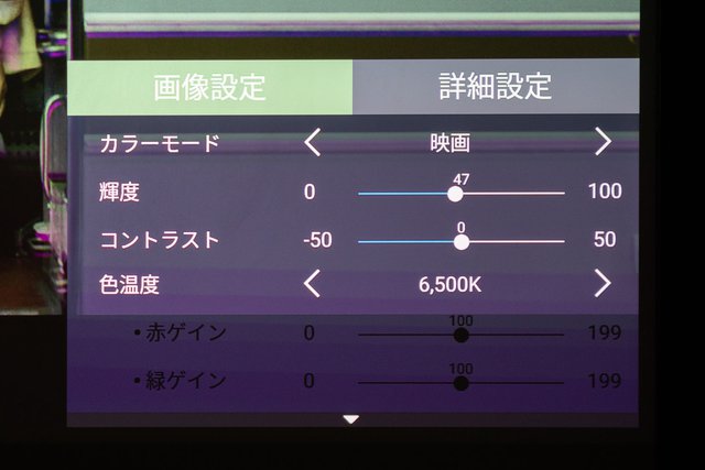 一方で、広角レンズで撮影された遠景については、細部の描き込みに、にじんだような甘さがある。また、デフォルトでは映像の地肌に、デジタルノイズのざらつき感があることが気になった。黒がいまひとつ沈まず墨色になることもやや不満。だが、プロシューマー/ハイアマチュア用途のディスプレイメーカーの出自を反映して、本機は豊富な調整機能をもつ。