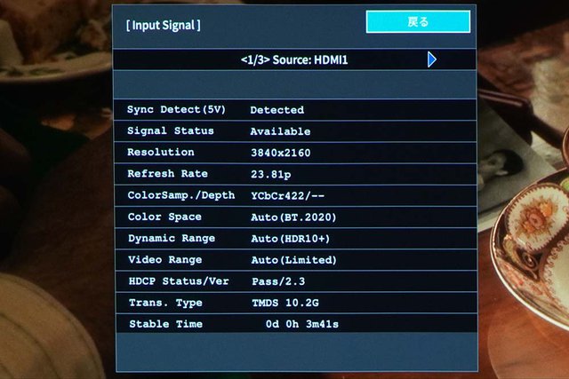 画面の隅々まで透明感に溢れ、細部の潰れ、にじみがなく、情報量にあふれている。胸のすく清澄な映像だ。新たに採用した2軸方式の4Kエンハンスメントの動作は的確で、電気的なエンハンスに伴う疑似信号がみられず、妨害要素のない、細部を慈しむことができる画質だ。階調のきめ細かさ、豊富さも印象的で、新画像処理デバイスの「シーン適応ガンマ補正」が的確に動作していることがわかる。