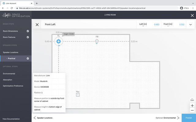 最後に、スペース・オプティマイゼーションについて、もう少し掘り下げて説明しよう。2013年にリリースされた技術で、現在で3世代目のバージョンとなる。最新バージョンの「アカウント・スペース・オプティマイゼーション」では、部屋の形状を自由にアサインすることが可能となり、寸法を始め、壁の材質や窓の位置などを入力して綿密なシミュレーションを実施する。計算行程が膨大にわたるため、ネットワーク経由でのアクセスを利用してLINNのサーバー・コンピュータが演算を実施することで、一般的なPCでは1日程度かかってしまう複雑な計算を、わずか数分(部屋のサイズによって変動あり)で完了させることに成功しているそうだ。