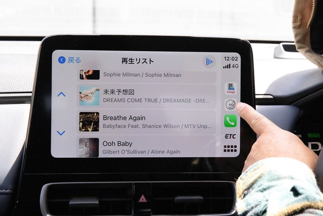 再生中の画面は、ジャケット写真に加えて、楽曲名やアーティスト名、アルバム名がバランス良く配置されており、とても見やすい。プレイリストも含め、操作性は良好。これらは安全面でも大きなプラスとなることは間違いない。