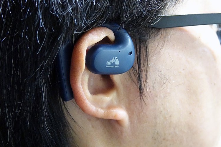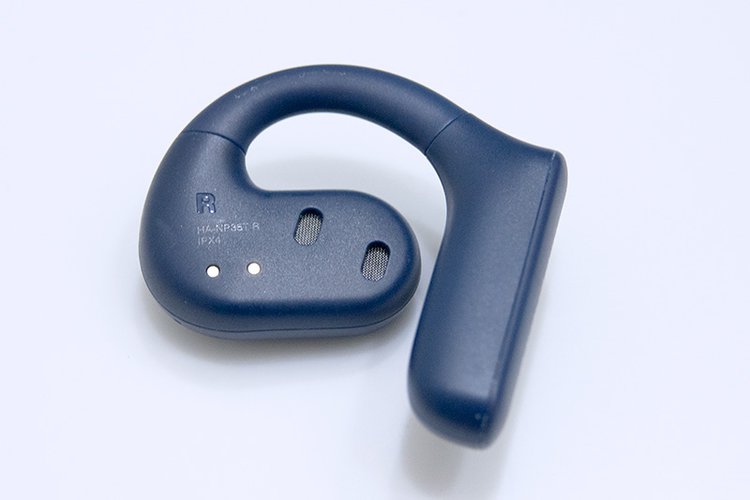 イヤーフックによって耳の外側に浮いているような形で固定されるイヤホン本体には、内側に向けてドライバーユニットが配置されており、耳をふさがなくても音楽再生や音声通話を楽しむことができる。