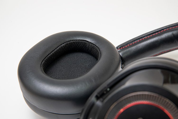 その意匠面や仕上げはハイエンドブランドに相応しいもので、ブラック/シルバーのツートンに、ハウジング部の赤いリングのワンポイントが映える。イヤーパッドやヘッドバンドの皮革類の質感も高級感を抱かせるもの。アルミ素材はプレミアム性の高いアルマイト仕上げである。