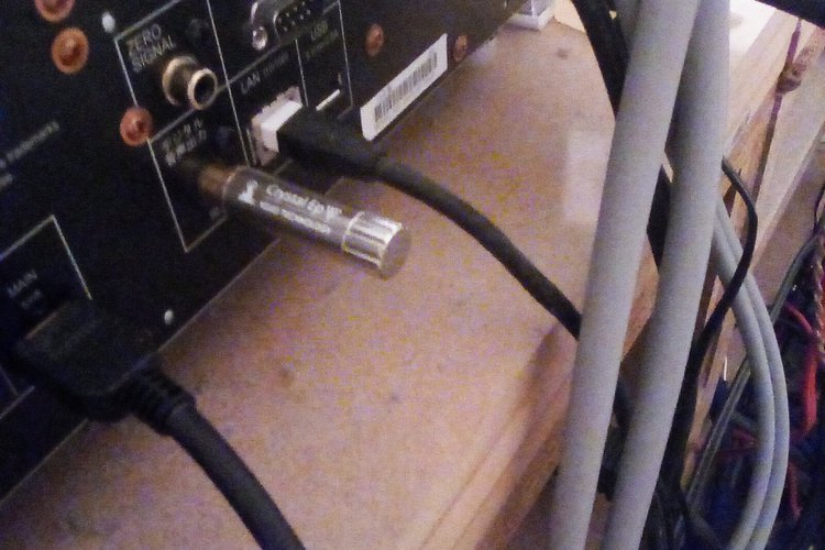 試聴は自宅で行った。リファレンス・システムのいろいろな機器へCrystal Epを接続し、音を聴き比べる。最初にRCAタイプの口金を持つ製品をディスクプレーヤーのデジタルアウトへ突っ込んで音を聴いた。念のため、この製品は機器のアース側としか接触しないから、動作に影響が出ることはない。