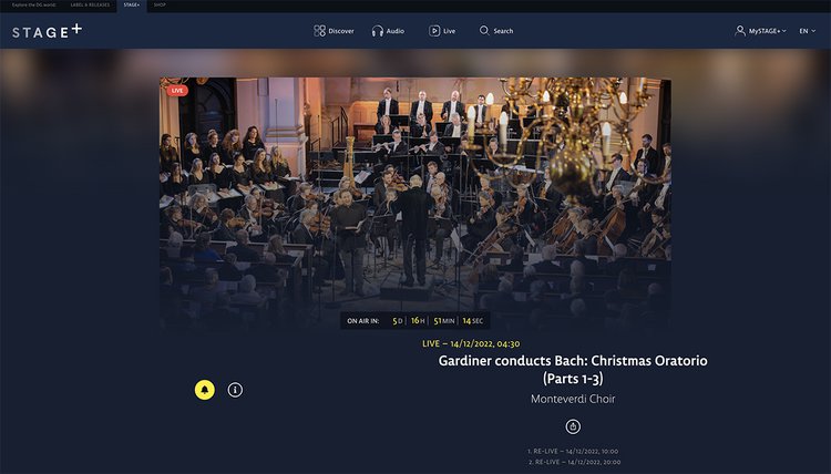 クリスマス・オラトリオなど、ライブ放映も定期的に開催予定