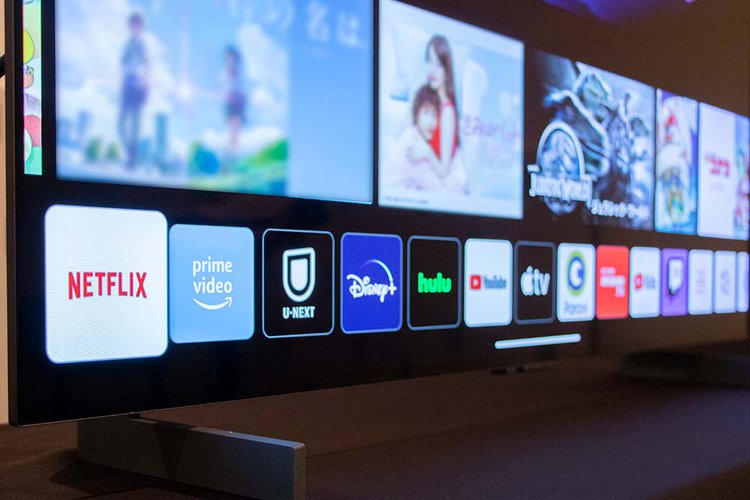 本機は多様なVODに対応し、画面上のホームボタンからVODに入るが、Netflix、Disney+、Amazon Prime Video、U-NEXTについてはリモコンにダイレクトボタンがある。