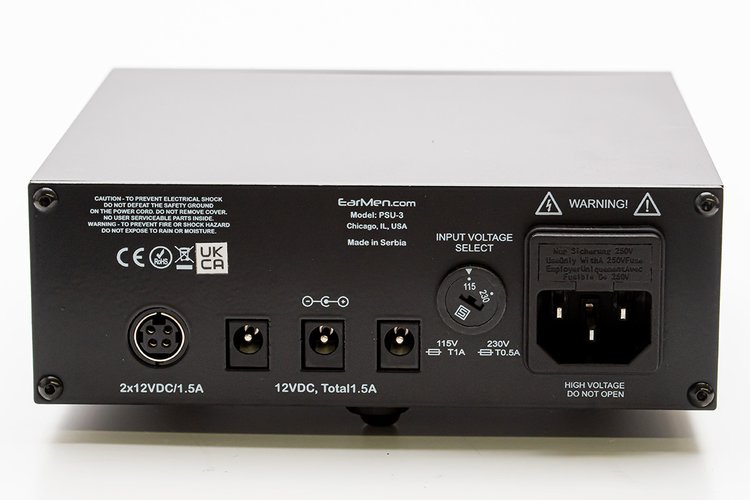 話を別筐体の電源部に戻したいが、同社によると十分なパワーと低ノイズを両立するためには、高品位パワーサプライユニット(PSU)を載せるスペースが必要だったとのこと。その理由は高感度なIEMやヘッドホンを使用する場合、電磁波の干渉を低減することにあったという。さらに、12Vの電源供給機能を備え、Traduttoなどの外部電源として使用できるのも面白い。
