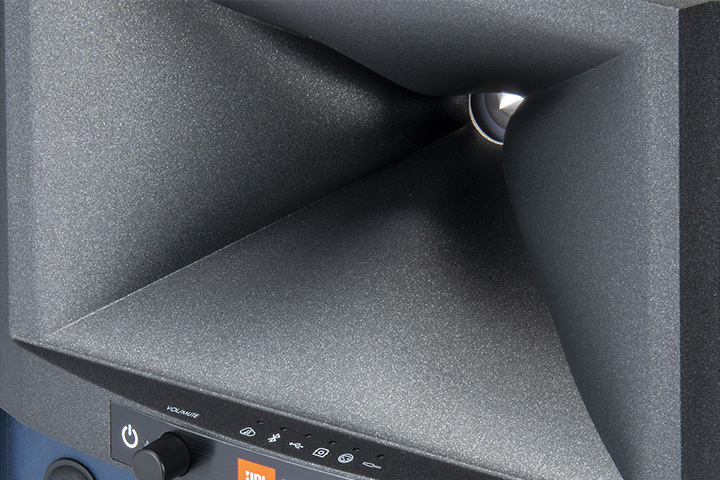 伝統のJBLスタジオモニターの外観をそのまま継承しつつ、充実したネットワーク再生機能、デジタルクロスオーバー回路、計300Wの大出力パワーアンプを内蔵した注目機である。