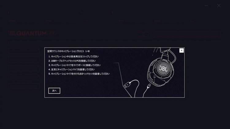 この空間オーディオ機能は箱から出してそのまま使うこともできるが、特にPCで使うなら “キャリブレーション” を行うのがオススメ。耳に着けたマイクからイヤーカップ内で響くテスト音を測定するという、ホームシアターで使われるような本格的な手法をもとに、装着した人に合わせて音の広がり方を調整してくれる。