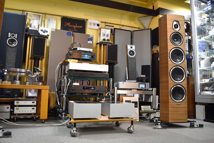 古巣オーディオユニオンお茶の水アクセサリー館を久々に訪ねると、英ウェストミンスターラボのデュアルモノプリアンプ「Quest」と純A級モノラルパワーアンプ「Rei」はソナス・ファベールの「Sonnet VIII」と組み合わされていた。とりあえず最初に繋ぐケーブルはアクセサリー館常備の試聴機の中から国産中級機を選んだ。背もたれが低いスタッキングチェアに座って試聴を開始する。