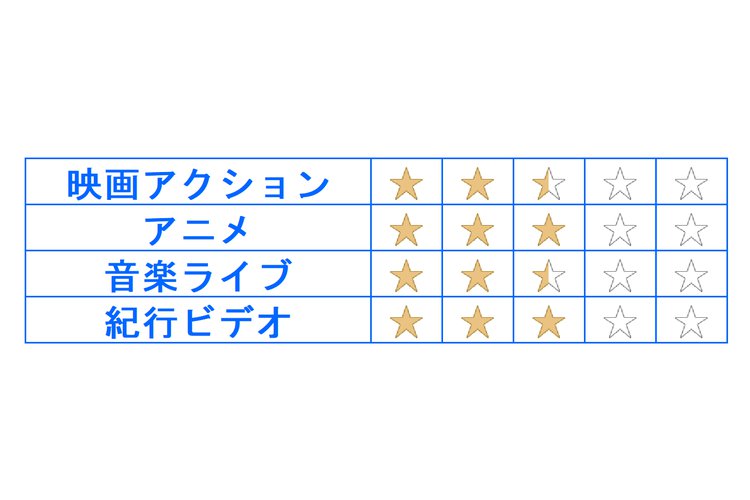 音楽ライブの映像は、ダンスなど動きの多いシーンでは残像がでるが、200ルーメン(ANSI)の明るさが効いている。アニメは色彩表現や輪郭の描き方に気になるところがあるかもしれないが、液晶ならではのカラーブレーキングの無さはメリット。音質は、ファン音が大きく、耳に付きやすい部分もあるが、繊細で軽快な表現も可能としている。