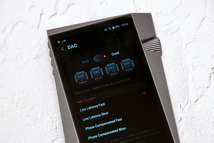 ただし、それだけでは一つ問題がある。ポータブル機として大切な再生時間だ。そこで合わせて用意されたのが、「デュアル/クアッドDACスイッチングモード」。従来通りのデュアルDAC動作も選択可能とし、その場合の連続再生時間は、先代機「SR25 MKII」と同等の約20時間を確保している。外出時はデュアル、自宅ではクアッドなど、積極的に使い分けたい。