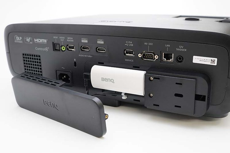 HT4550iの実機は資料からイメージするより小さい。具体的な数字は420.5W×135H×312Dmmとなるが、エッジを丸めた滑らかでスリークな造型は数字以上にコンパクトに感じさせる。本体質量も約6.6kgと、高い場所に設置する際にも苦労はない。サイズ、デザインも性能である。4LEDとハイスペックをコンパクトにまとめ上げる設計手腕に感嘆。VOD動画配信をプロジェクター普及のまたとない好機ととらえ、知見を全方位的に傾注したBenQの意欲の表れである。