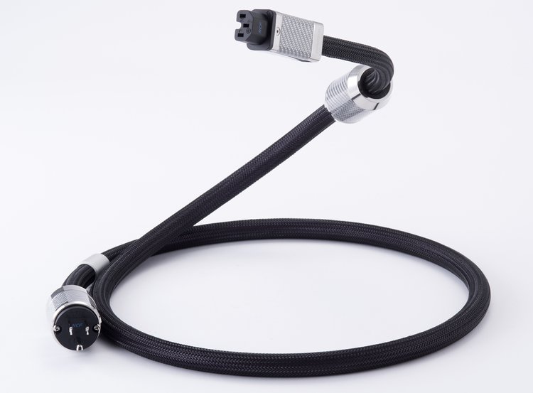 試聴モデルを開梱すると、極太のケーブル本体の両端と中間部に配された、シルバーカーボンフィニッシュがまず目に飛び込む。手に取るとずっしり重い。そしてIECコネクター「CF-C15 NCF(R)」は、円筒状の大きな「FI-50 NCF(R)」をコンパクトな直方体に納まるようギュッと凝縮させたかのようで、ダウンしたサイズとは逆に高級感がアップしている。