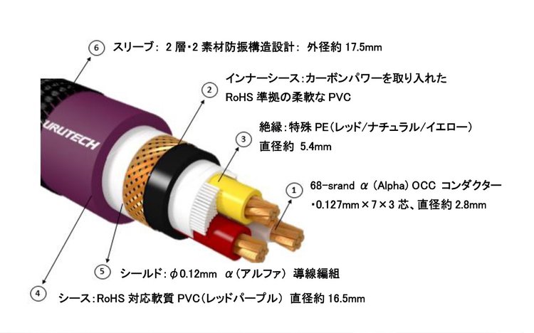 【Powerflux-C15】●接続部端子部:プラグ(カーボンファイバーNCF仕様)→FI-50M NCF(R)、IECコネクター(スリムタイプのカーボンファイバーNCF仕様)→CF-C15 NCF(R)●特殊素材「NCF」をプラグボディ部に調合。ナノ単位のセラミックパウダー、カーボンパウダーによるこれまでの強力な制振効果に加え、静電効果を向上●端子接点:非磁性ロジウムメッキ●ケーブル素材:α-導体(OCC素材)の高密度導体●絶縁材:カーボンパウダー調合の高機能PVCを用いた2重シース構造(振動と外部からのノイズを遮断するとともに柔軟性を合わせ持つ)●ケーブル直径:約17.5mm●定格:15A 125V〜(日本/米国/カナダ等)、10A 250V〜(欧州連合地区)