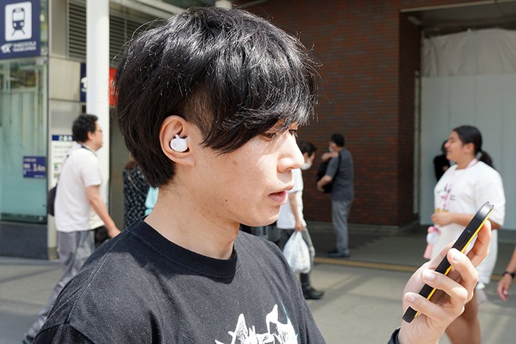 mameBudsは、イヤーピースがなく、耳を完全に塞がない構造としているオープン型イヤホン。完全に周囲の音が聞こえるため、 基本構造としては“ながら聴き” イヤホンに分類することができる。