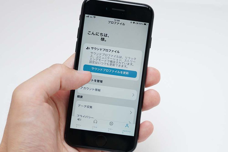 Sennheiser Conversation Clearアプリをスマホにインストールしたら、最初にユーザー個人の「サウンドプロファイル」をつくる。本機のサウンドをユーザーの聞こえに合わせてカスタマイズする機能だ。