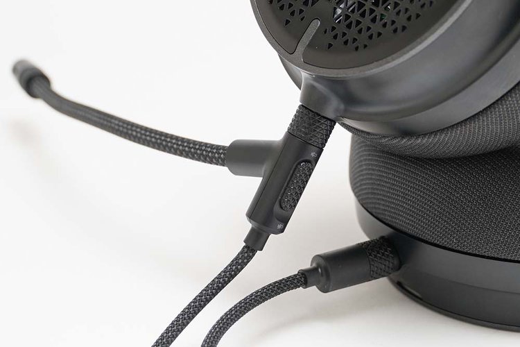 ケーブルは着脱が可能。左右ハウジングに3.5mmの入力端子があり、ここにそれぞれケーブルを挿す両出し方式を採用する。付属ケーブルは2種類あり、1本が左チャンネルの端子部分にブームマイクが付いたタイプ、もう1本はマイクなしのストレートタイプとなる。いずれも再生機器側の端子は3.5mmだ。ケーブルは被覆がファブリック製のため、柔らかく取り回しがしやすい。タッチノイズもほぼなかった。