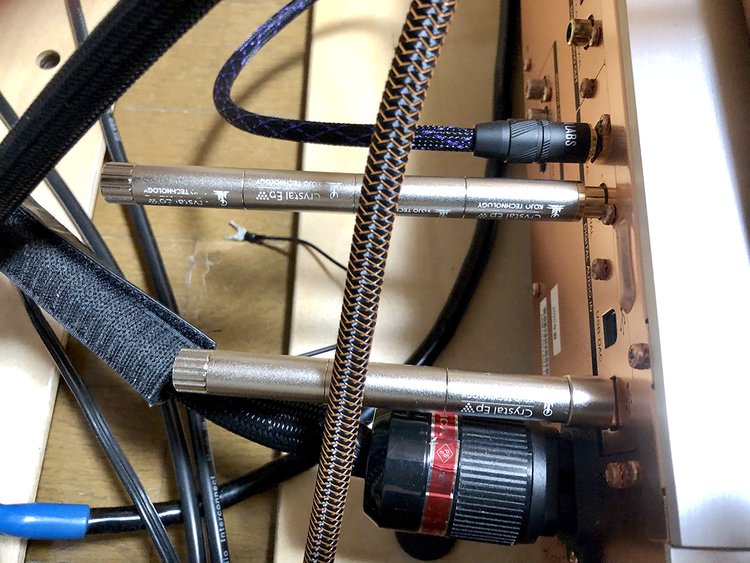 最も小型な「仮想アース」といったら光城精工の「Crystal Ep」シリーズだろう。端子形状がRCAやUSBなどさまざまなタイプが用意されているが、プラグ(端子部分)と後ろが取り外し可能で、複数個「連結」しても使えるというアイデア商品だ。