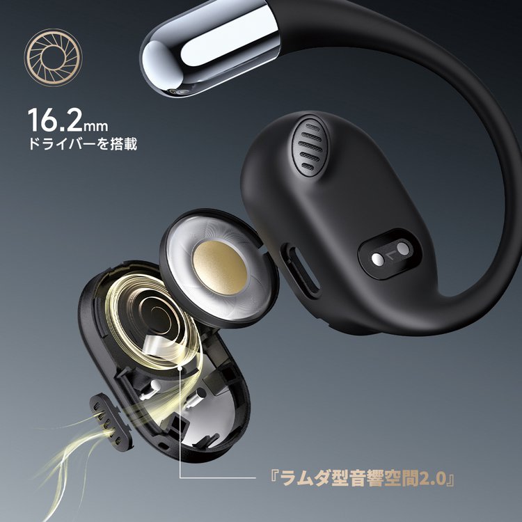 なお、ラムダ型音響空間2.0は、同社のオープンイヤー型ワイヤレスイヤホン「RunFree」に採用されていた「ラムダ型音響空間」をベースにGoFree2に最適化したものだ。