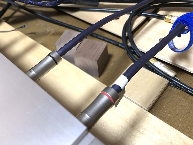 オーディオテクニカのアナログRCAケーブル「AT-IC500R」。付属品グレードのケーブルから換えるとスタイリスティックス「愛がすべて」は各ヴォーカル音像のS/Nが劇的に改善する。ファルセットが甘く伸びやかで、伴奏が軽快になる。