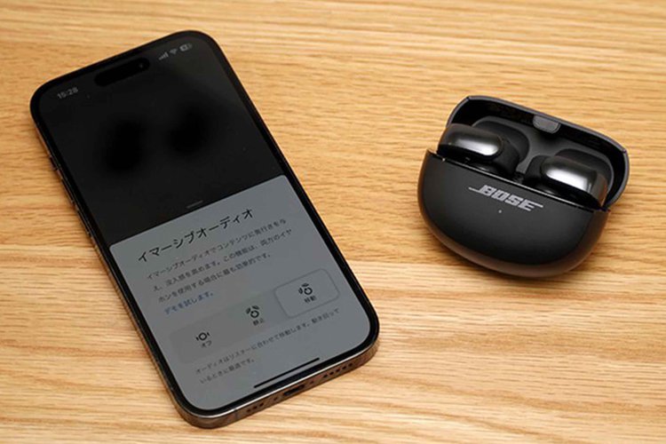 特筆したいのは「Boseイマーシブオーディオ」。筆者は一般的なイヤホンのイマーシブ効果には不自然さを感じがちだが、オープンイヤー型+Boseイマーシブのそれは、好ましい新感覚だった。再生音がイマーシブ化されることで、むしろ周囲の環境音との馴染みがよくなり、より自然な聴き心地とさえ感じられた。