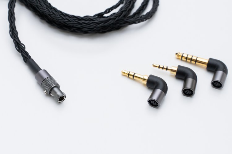 ケーブル端子はこれまでのコンセプトモデルと同じく、リケーブルの選択肢が豊富な0.78mm 2pinコネクターを採用。付属ケーブルは純銀&純銅導体を編み込み、3.5mmシングルエンドと2.5/4.4mmバランスを使い分けられる「3in1プラグ」仕様だ。2pinコネクターを覆うカバーが、大型シェルに合わせて調整された新形状になっているのもこだわりポイントだ。