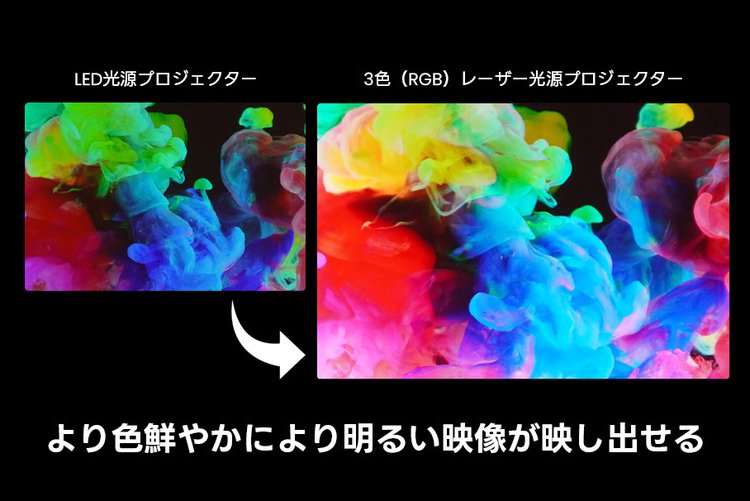 N1S Pro 4Kは、2023年度モデル「N1 Pro」の後継機種であり、前モデルではフルHD対応だったところ4K対応にレベルアップし、さらに輝度も2500ルーメン(ANSI)にまで大幅に向上している。圧倒的な小型化を成し得た3色(RGB)レーザーモジュール「QuaLas RGB」の搭載をはじめ、自社開発「MALCエンジン」を兼ね合わせている点だ。光源のポテンシャルの高さだけでなく、なめらかで美しい映像を叶えている。