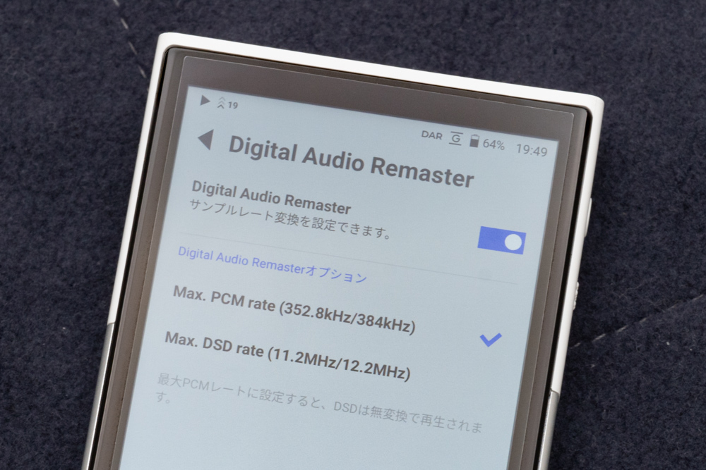 細かなところでは、PC等と接続してのUSB-DACモード時の設定項目「バッテリーの充電」も要注目。USB-DACとして常用しPCに接続しっぱなしにする運用でも、これをオフにしておけばバッテリーへの負荷を抑えられそうだ。