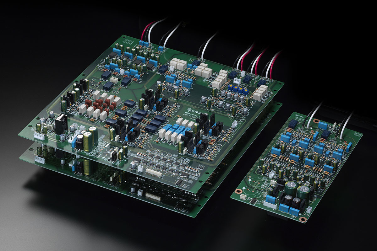 さらに私はその内部技術に驚愕した。まさにハイエンドな回路構成で精密感がある。特にイコライザーの増幅回路は実に規模が大きい。L/R独立2階建て基板による完全デュアル・モノ・コンストラクションである。さらに入力から出力までを最短距離でUターンさせることで、ピュアな伝送も実現。これにより左右のセパレーションの向上や干渉も低減させている。