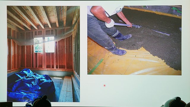 イベントでは同社がこれまで手がけた物件の工事過程やポイントを解説する過去事例紹介も実施。この日は、アナログレコード収集やサックス演奏が趣味のため、大きな音を出せるよう防音工事の依頼があったというオーナーの物件について紹介された。