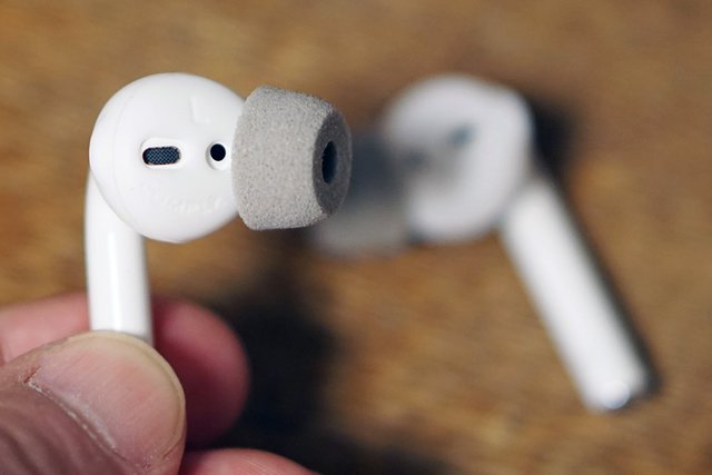 本体は、ソフトフォームチップとシリコン製のスリーブが一体型になっている。スリーブをAirPodsに被せて使用する。