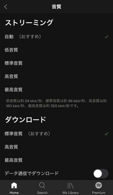 ストリーミングサービスの音質については、Spotifyなどは回線の状況に合わせて選択することができる。それでも最高音質は320kbps程度であり、Deezerやmora qualitasなどがスタートしている「CDクオリティ」または「ハイレゾクオリティ」の音質には届いていないのが現状だ。また、高音質の音楽伝送はいわゆる「ギガを食う」状態となるため、通信料が余分にかかってしまう。そのため、ネットワークの状態に応じた使い分けが必要だが、5G回線の実用化により、クオリティ面での進化は期待できそうだ。
