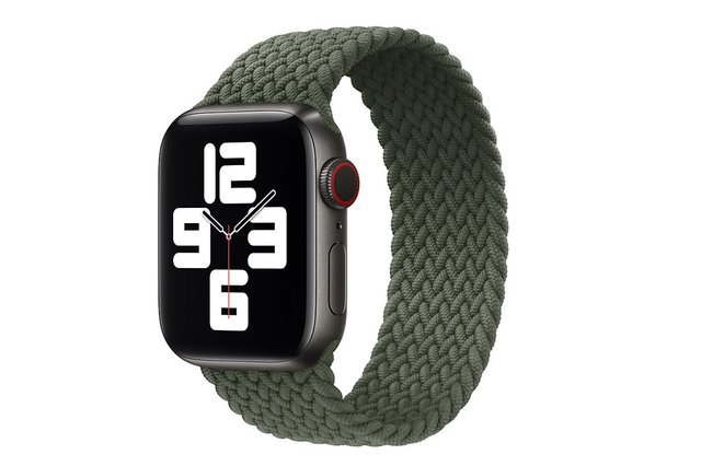 もう1つのブレイデッドソロループも、互換性のあるApple Watchの機種や、強度や耐性の特徴はソロループと同じ。編組形状のバンドとなっており、100パーセント再生素材のポリエステルフィラメント糸を16,000本使って作られている。