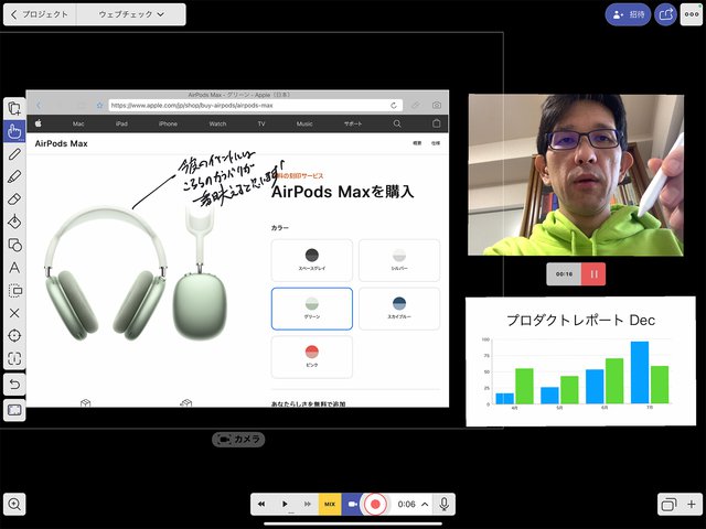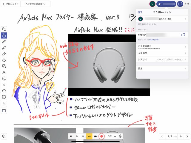 画面内にWebサイトの画面を配置してスクロール操作をしながらApple Pencilで注記を加えたり、PowerPointやKeynoteのプレゼン資料を読み込んで、企画書に赤を入れながらチームで仕上げるといった使い方も可能だ。