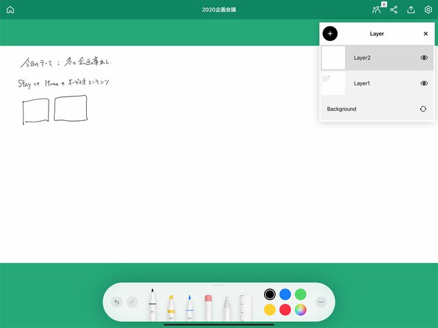 「Limeboard」はiPadOS標準のペンツールによる、Apple Pencilの手書き入力に対応するシンプルなオンライン共有ボードアプリだ。iPadOSのみの対応になるが、無料で使えるところにも注目したい。1つのボード(ワークスペースとなるファイル)に複数のレイヤーを重ねて配置できる使い勝手を特徴としている。例えば参加者ごとにレイヤーを分けて書き込むように取り決めておけば、誰かのコメントをうっかり消してしまうこともない。
