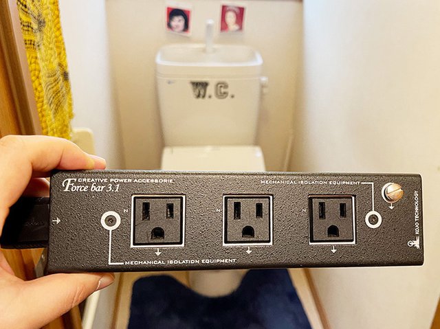 ふだん、温水洗浄便座の水の勢いを最強レベルに設定していて、さらなる水圧を求めているという方は、オーディオ用電源で強化する方法があることを覚えておいてほしい。力強い刺激がお尻を満足させること請け合いだ。
