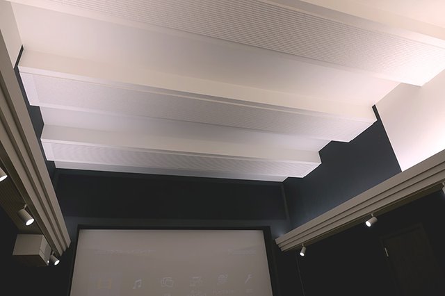 広さは前述のように35畳で、天井高が4.5m。200インチスクリーンを設置してもなお広く感じる開放的な空間に、音が朗々と響くシアタールームだ。