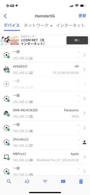 ホスト名が設定されていない機器は名称が表示されないものの、どの機器かの見当はつくはず。家電のIPアドレス特定に役立つはずですよ。